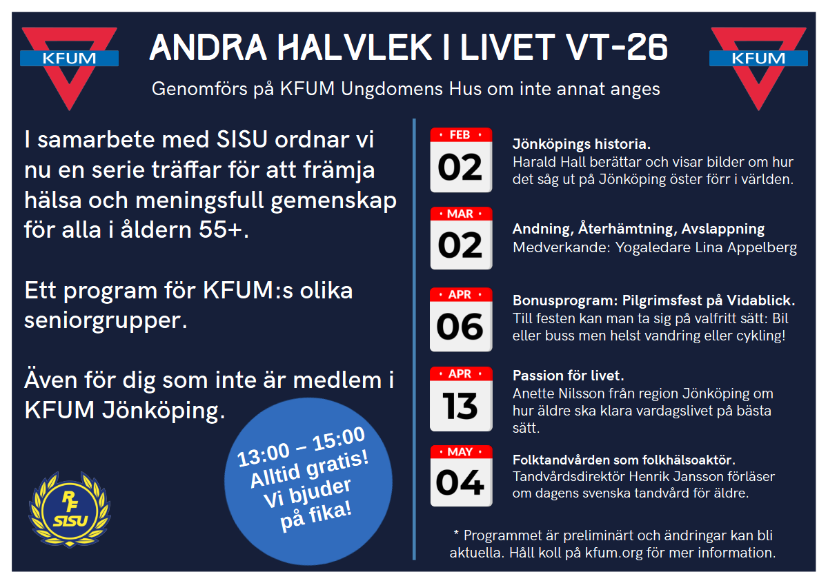 Ett program för KFUM:s olika seniorgrupper men även för dig som inte är medlem i KFUM Jönköping.